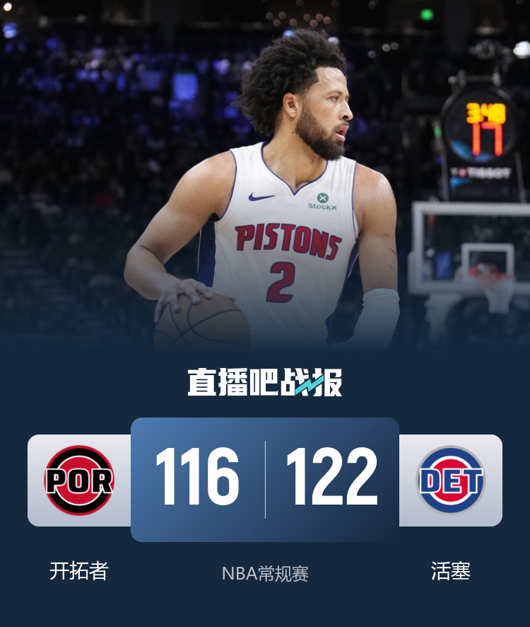 12月6日讯 NBA常规赛,开拓者对阵活塞,开拓者上场比赛击败骑士结束连败,杨瀚森本场比赛未被召回,活塞上场不敌雄鹿。
